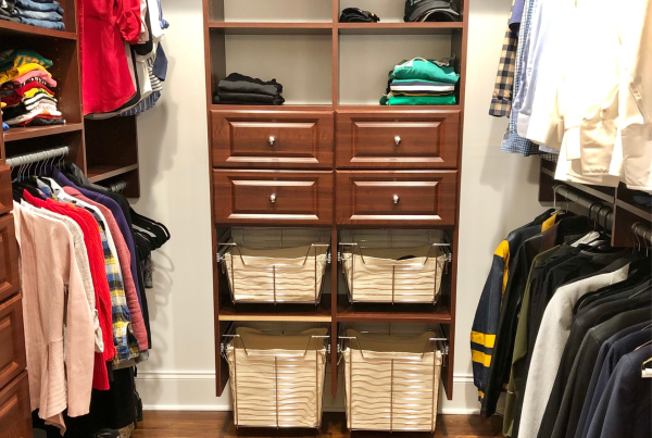 Reset your storage spaces seasonally. Twice a year, pull everything out, assess what you actually wear, and donate or discard what no longer serves you. A closet reset is only effective when the laundry is done first — otherwise you’re organizing a mix of clean and dirty, and the result will never last.
